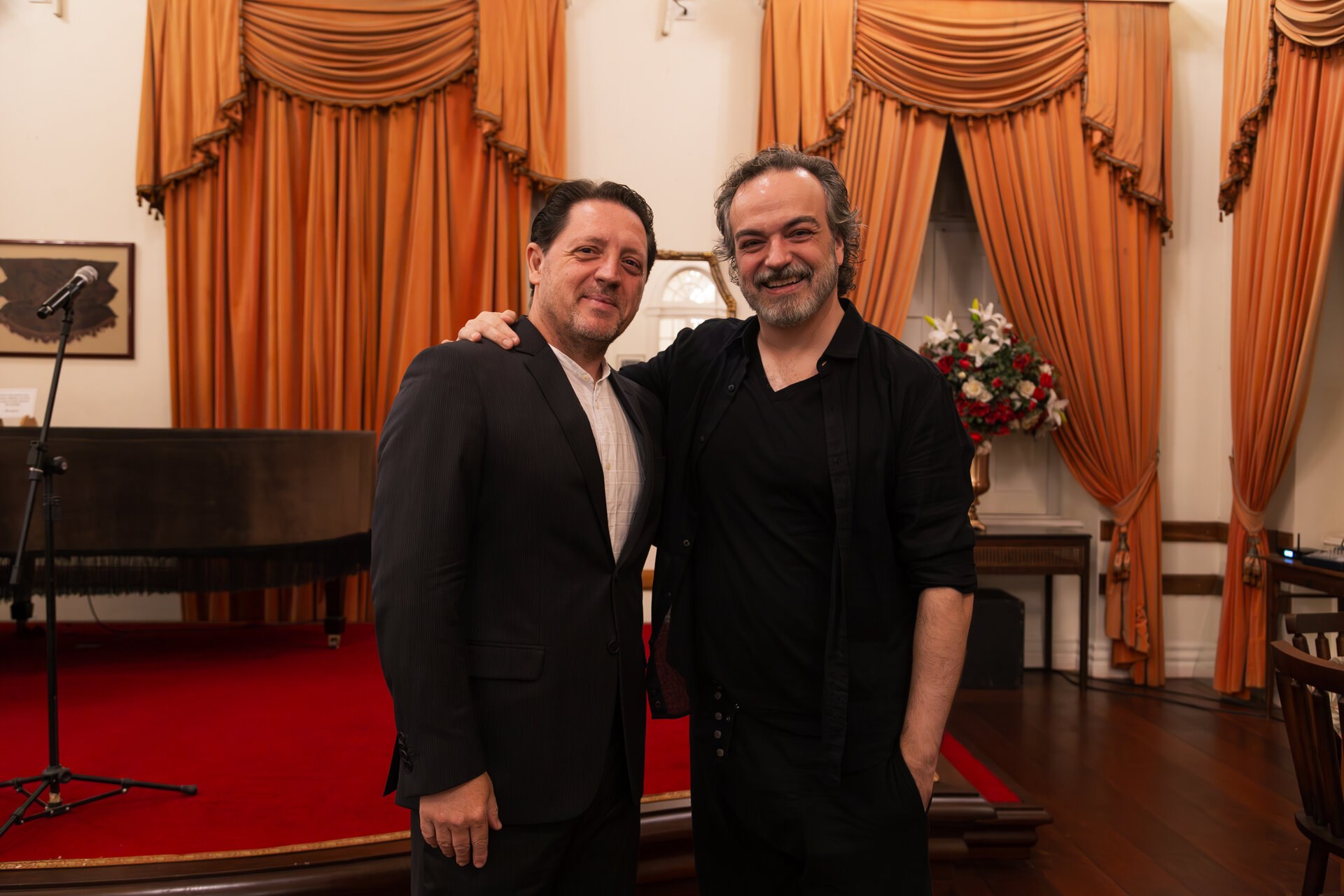 O maestro Evandro Matté e o cantor Pedro Verissimo protagonizaram um momento sublime de homenagem a Erico Verissimo com a Orquestra Theatro São Pedro (Foto: Vitória Proença/Divulgação)