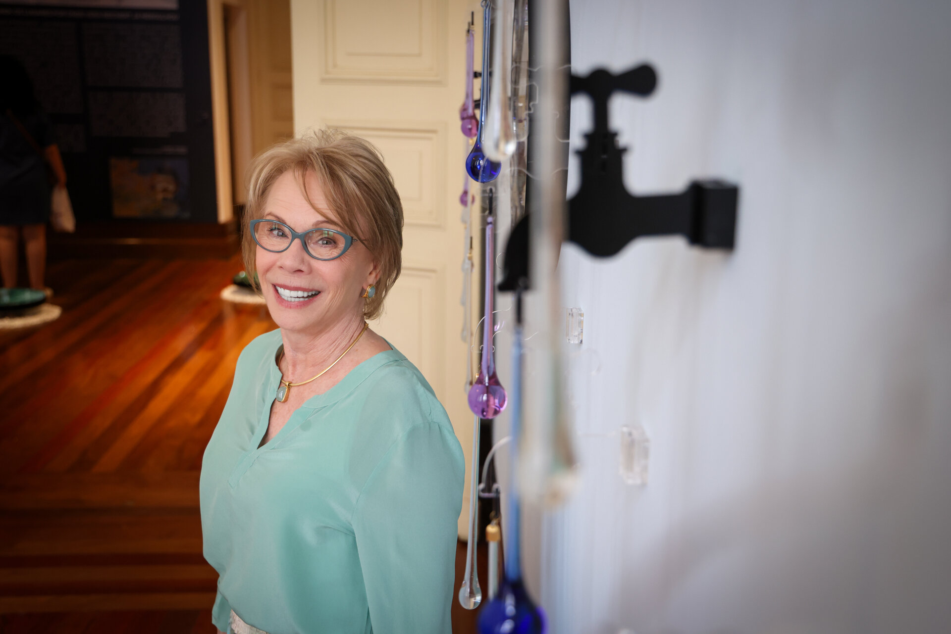 Vera Reichert na abertura de sua exposição Sobre Águas, no Museu de Arte do Paço (Foto: Fredy Vieira/Divulgação)