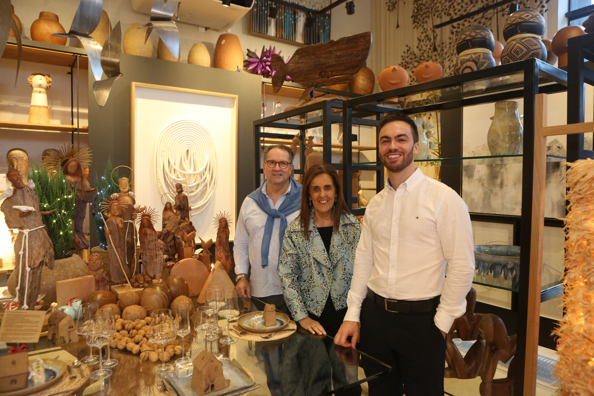 # Os recantos da Divina Brasilidade, com ornamentação inspirada nos festejos de final de ano, estão recebendo muitas visitas desde o coquetel de apresentação na tarde desta quarta-feira (dia 10). A árvore de Natal, criada com beija-flores, pequenas e delicadas obras do artesão mineiro João Teixeira, montada por Elias Zorzi, assim como as mesas artísticas, evidenciando o bom gosto de Lúcia Suñe, da Lucia Suñe Detalhes, do arquiteto Eduardo Machado e do curador de arte e antiguidades Rafael Selonk encantam a quantos passam pela panorâmica loja do Bairro Três Figueiras.