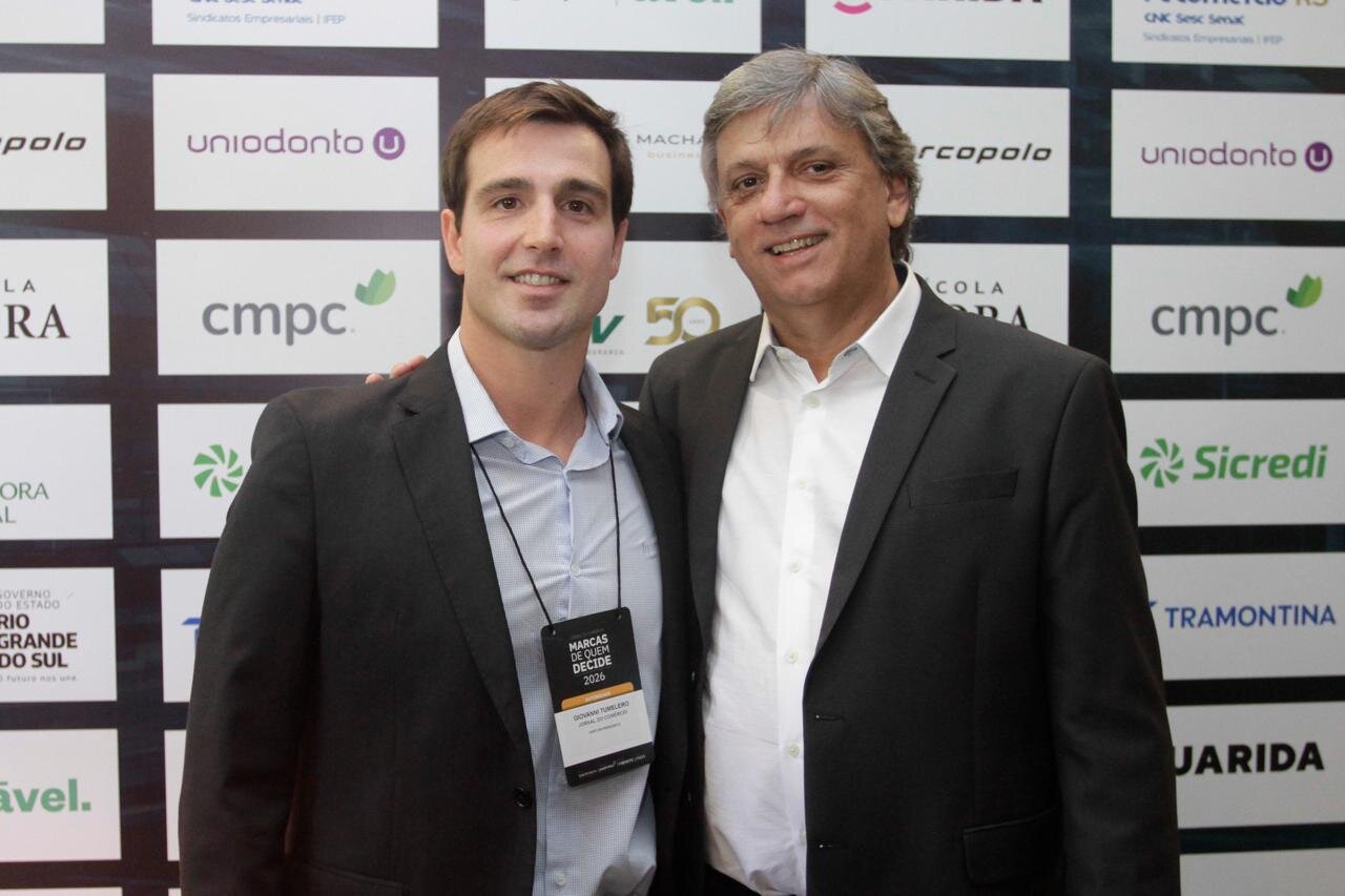 # Giovanni Jarros Tumelero capitaneou a 28ª edição do Marcas de Quem Decide, promovido pelo Jornal do Comércio. O evento reuniu lideranças empresariais terça-feira (dia 3), no Salão de Atos da PUCRS, para revelar as marcas mais lembradas e preferidas em 78 categorias. Realizada pelo Instituto Pesquisas de Opinião, ouviu lideranças de mais de 47 cidades, que responderam a 172 perguntas e citaram mais de 4 mil marcas. Entre os destaques, a CMPC liderou como Marca Gaúcha Ambiental, enquanto a Tramontina ficou em primeiro lugar como Marca Gaúcha Inovadora e Grande Marca Gaúcha do Ano.