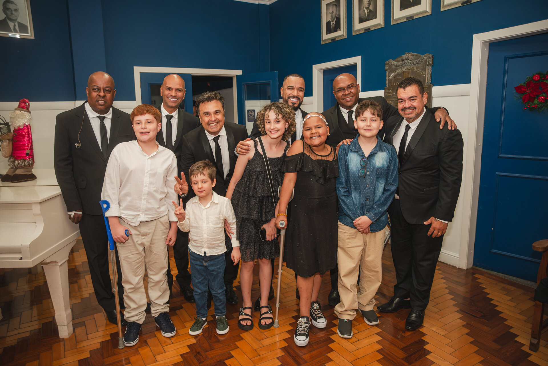 O grupo Só pra Contrariar com crianças assistidas pelo ICI (Foto: Andressa Blehm/Divulgação)