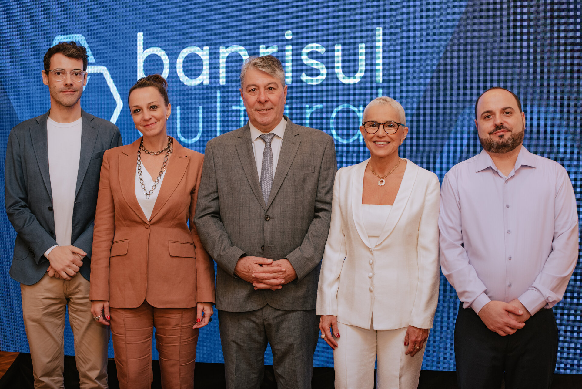 Benhur Bortolotto, Gabriela Munhoz, Fernando Lemos, Beatriz Araujo e Ismael Dapont no lançamento do Banrisul Cultural (Foto: Isadora Quintana/Divulgação)
