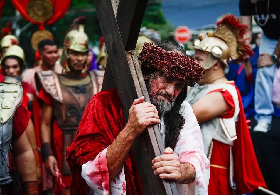 # Ao lado de Oliboni, 120 pessoas participam da apresentação. Cerca de 60 são moradores da própria comunidade, que vestem as roupas de soldados romanos e habitantes de Jerusalém ao lado de atores profissionais.