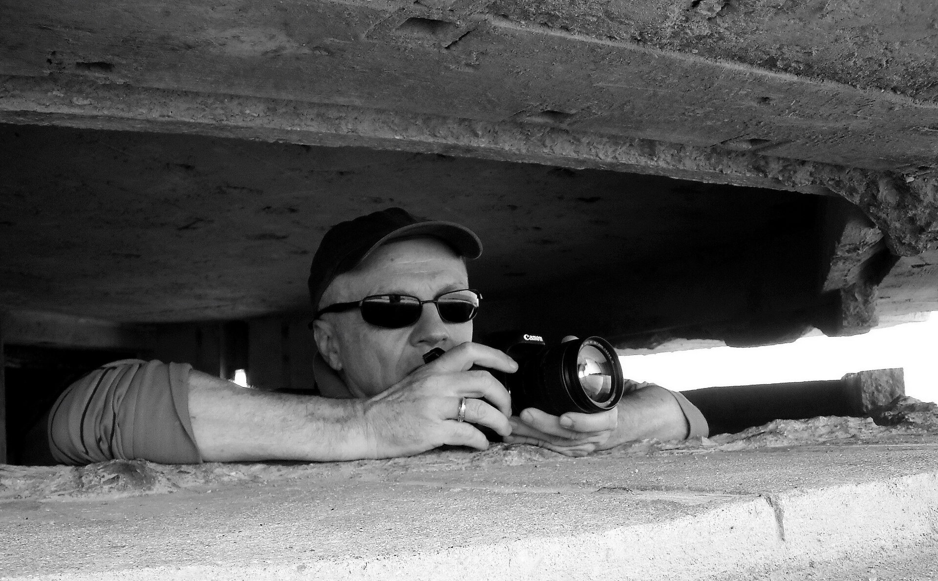 Gilberto Perin em um bunker alemão na praia de Omaha, Normandia, França (Foto: Alfredo Aquino/Divulgação)