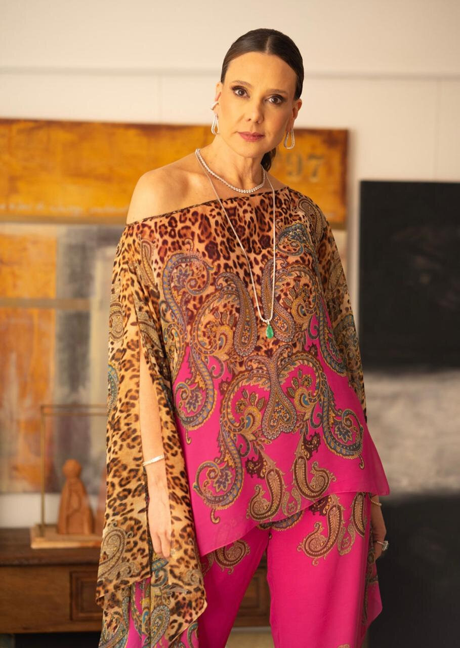 # O Atelier Veiga Lima & Gatelli associou a apresentação de suas coleções aos movimentos assistenciais em ocasiões prestigiadas. Fabíola Rohde Lopes desfilou um dos trajes aplaudidos.