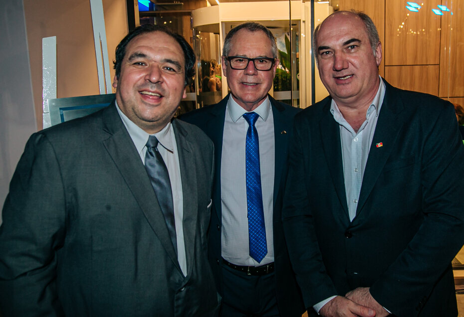 Thiago Pereira Duarte, deputado estadual, Antônio Gabriel Teixeira, presidente da Uniprime Sul, e Alencart Loch, assessor técnico da Secretaria de Trabalho e Desenvolvimento Profissional do RS (Foto: Daniel Scherer/Divulgação)